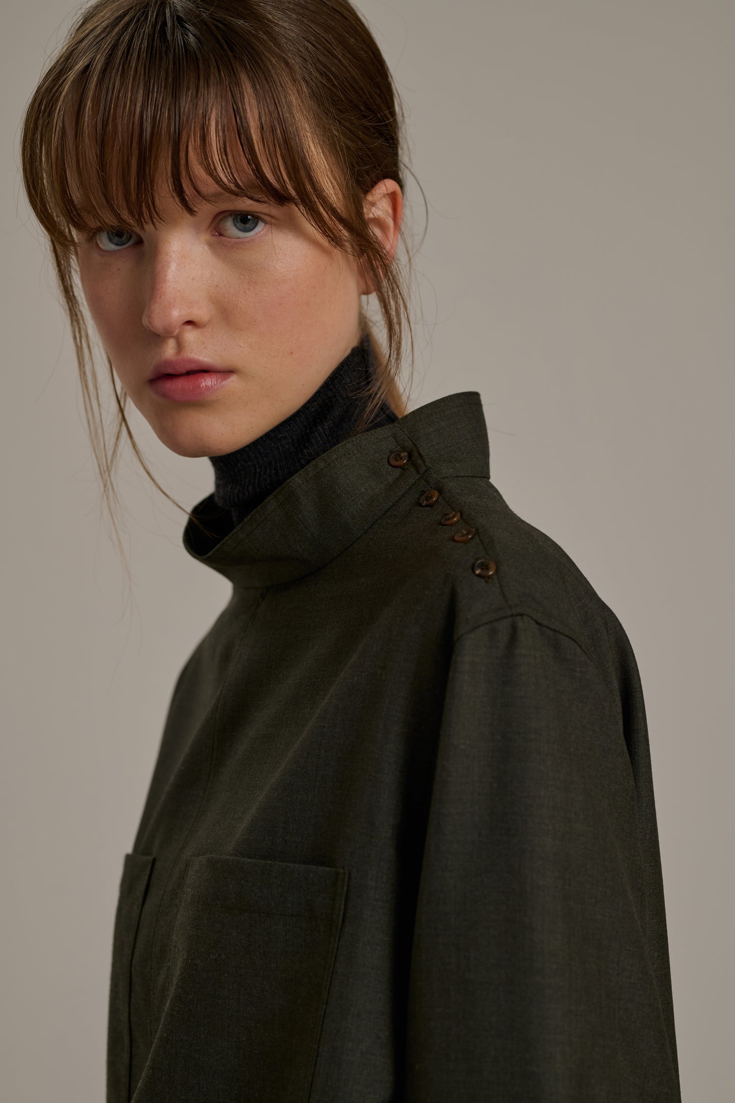 Heathered Wool Canvas Blouse khaki