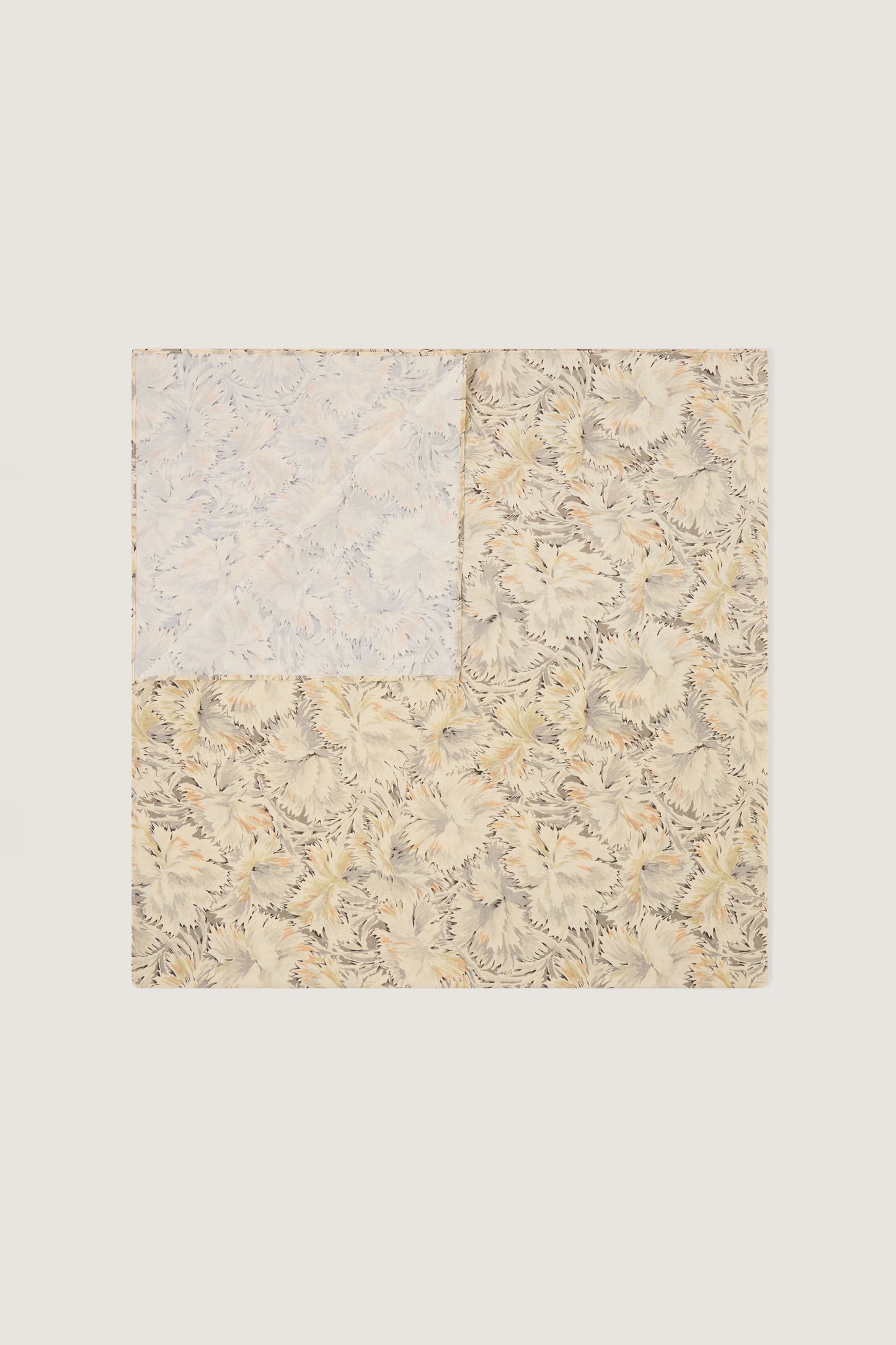 Cotton poplin scarf with "Bloom" print beige/grey