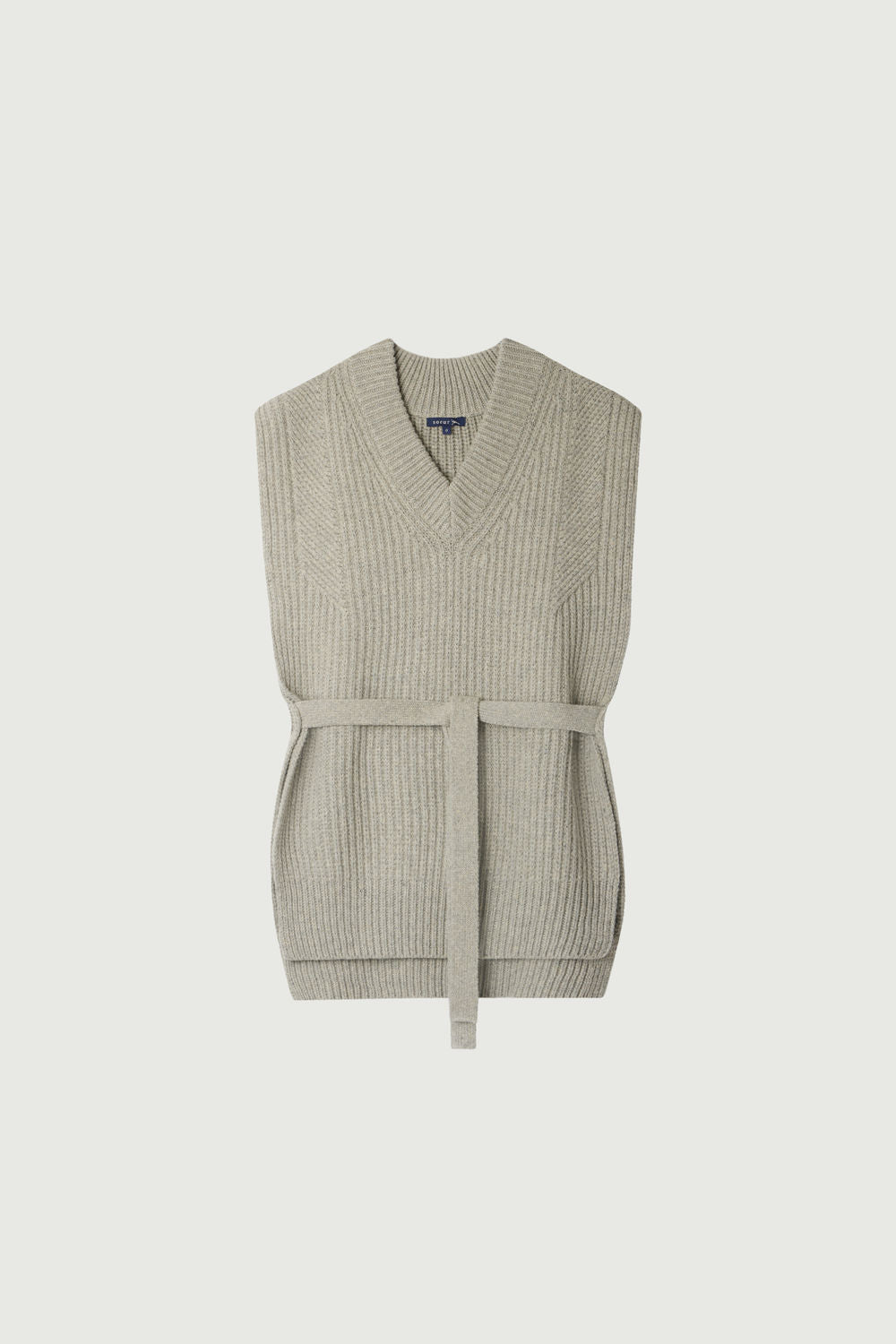COSTA is a straight bib, knitted in virgin wool yarn. Visual impact is created by a ribbed effect, with ties on the sides that can be worn belted to accentuate the waist or left to hang. This piece is ideal for adding warmth to an outfit, such as a silk dress or a cotton shirt.