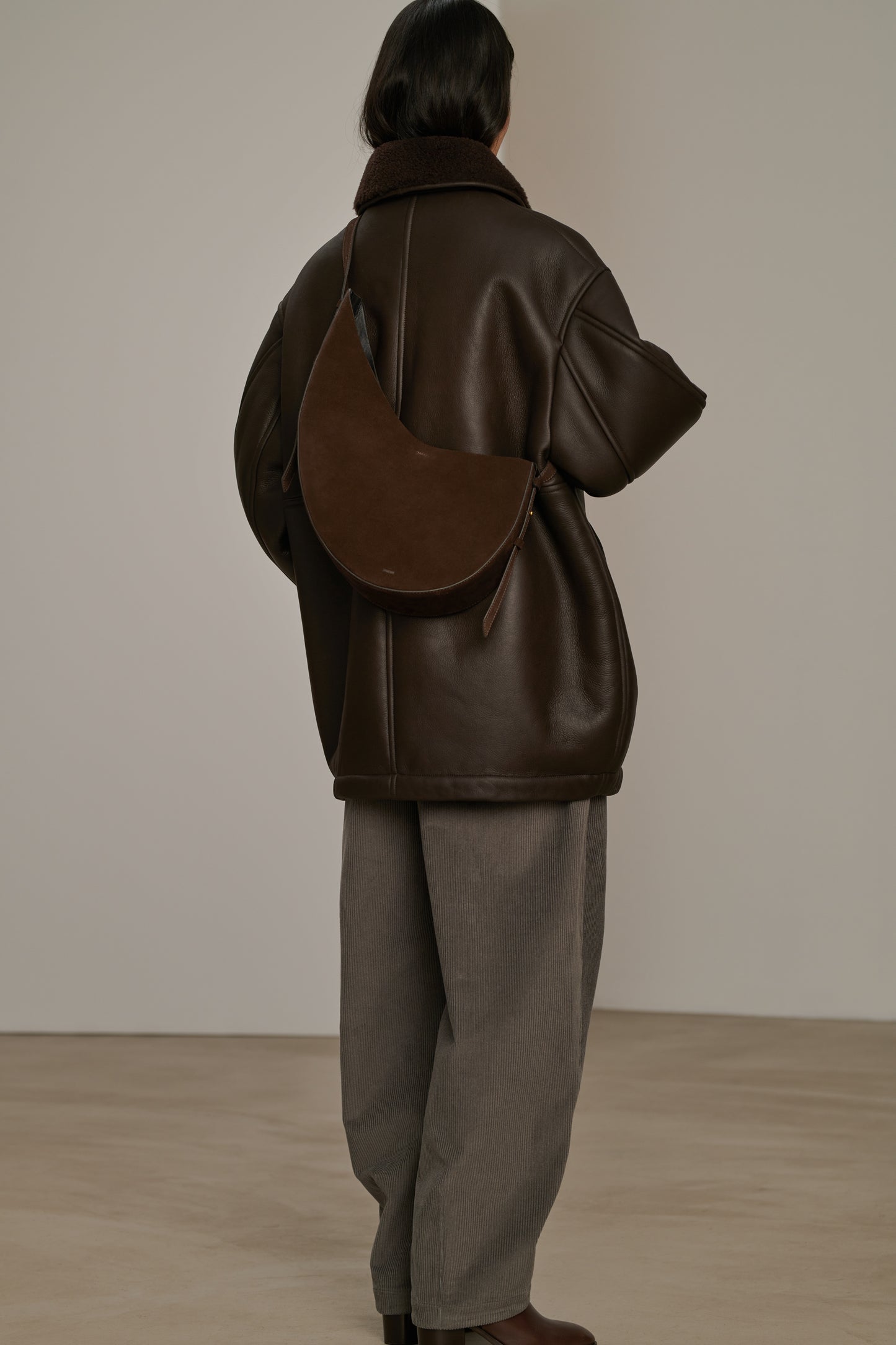 - Removable lambskin leather pouch inside the bag secured by a press stud